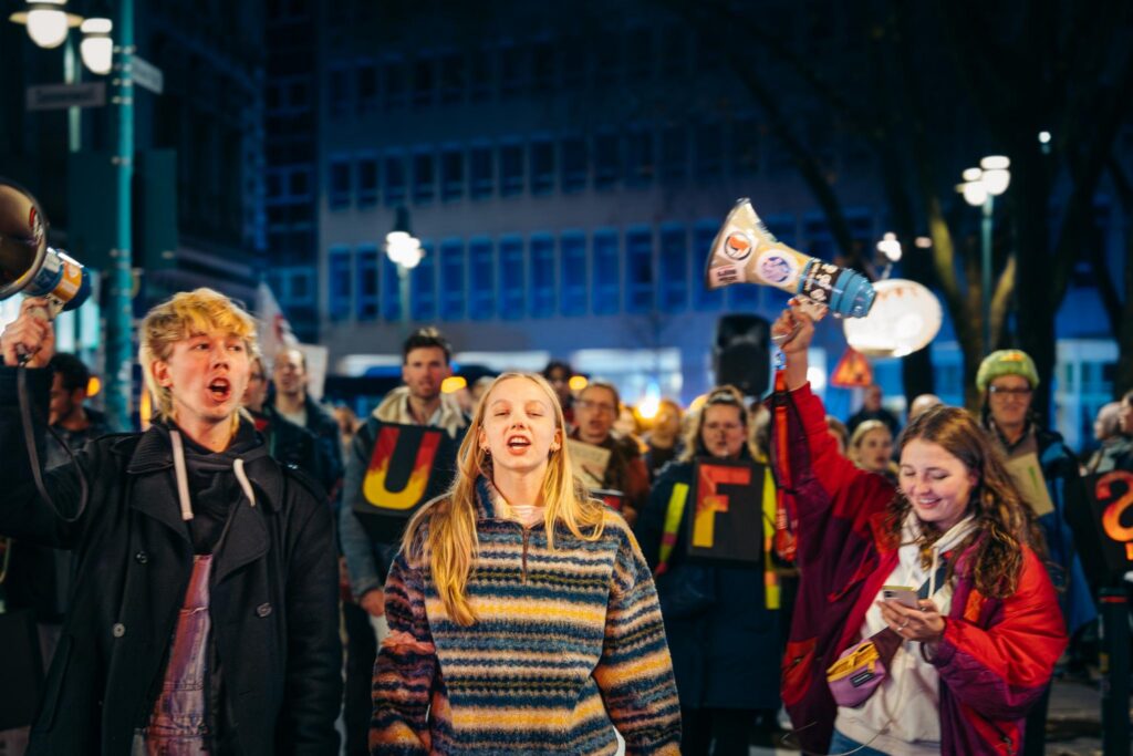 Wir hatten ganz viele tolle Laternen, Schilder mit Lichterketten und unvergesslich: unser toller Laternenschriftzug „Zukunft?“. Danke an alle die da waren und mit uns laut und leuchtend waren 🤍
